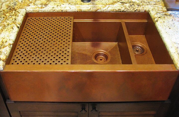 This sinks are constructed of pure copper, which we are speaking about. Their style has an interesting rustic atmosphere about it. They will boost your house and kitchen’s visual appearance. We say that you should be conscious that copper will change its color over time. This allows the long-term development of land and owners choose goods that survive because it offers them the sense of success. In a variety of models in the industry, copper sinks are available. That must have been exceptional.